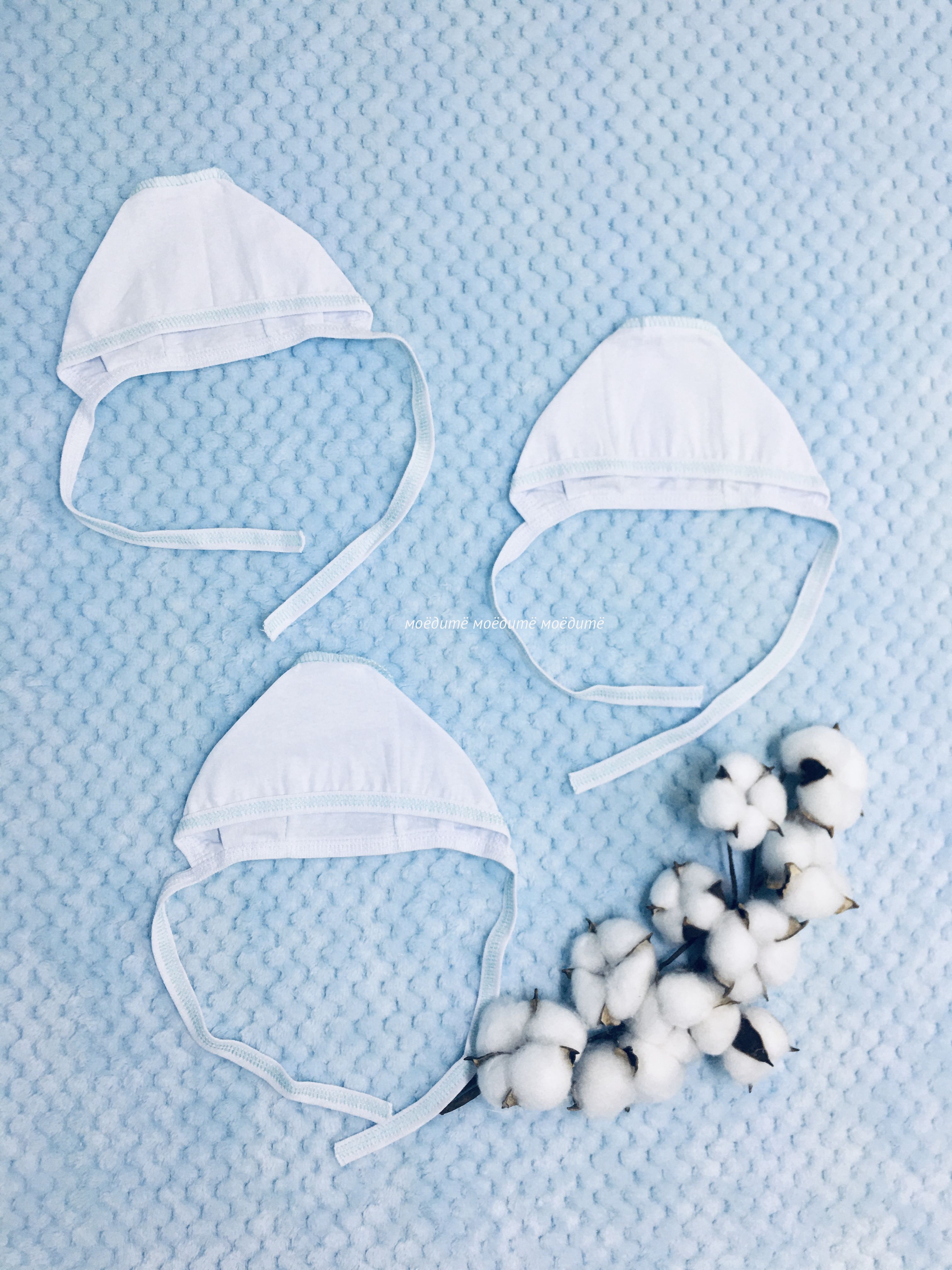 "МоёДитё" чепчик кулирка белый + мята ЧК015 "Гардения"